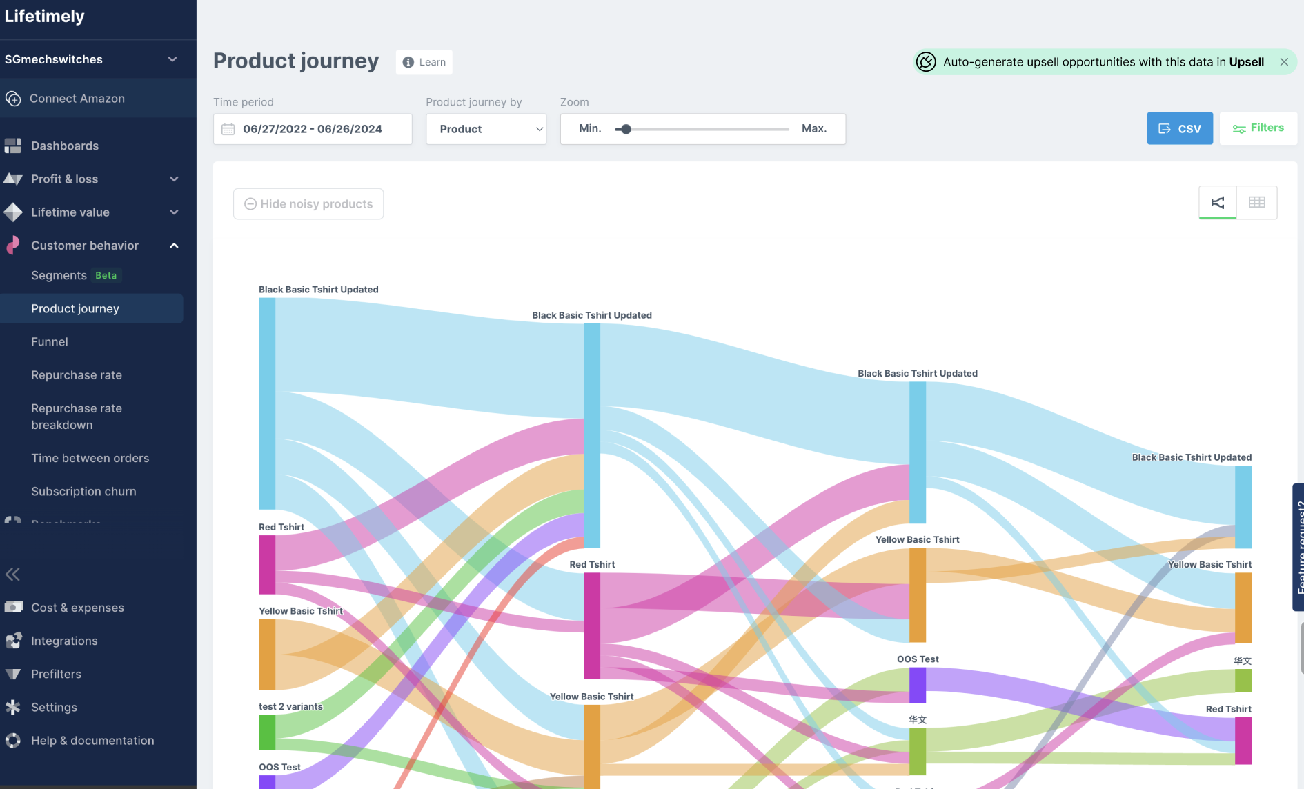 Lifetimely recommendations are powered by doing basket analysis on what was bought by a customer with a particular product on their first order, second order and so on. You can see the live recommendations in Product Journey on Lifetimely.