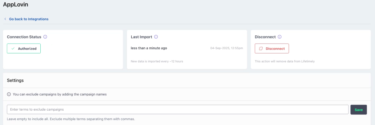 - After setup, your AppLovin data refreshes automatically every 12 hours.