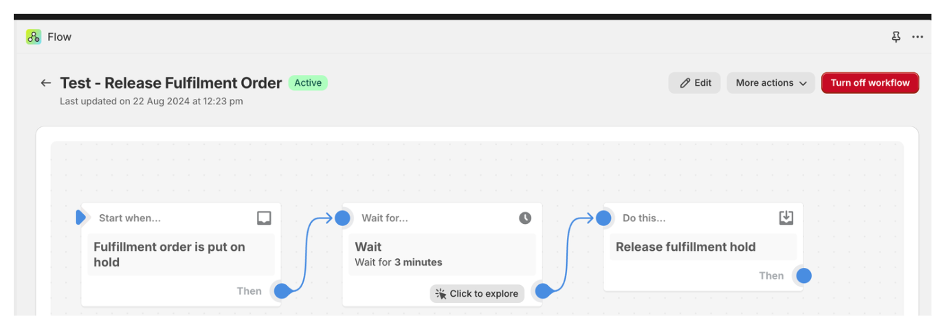 Follow the 3 steps created as per image above. For wait duration, set a time equal to maximum minutes you want to wait. We recommend making this at least >1min longer than the countdown timer you might have on our app.