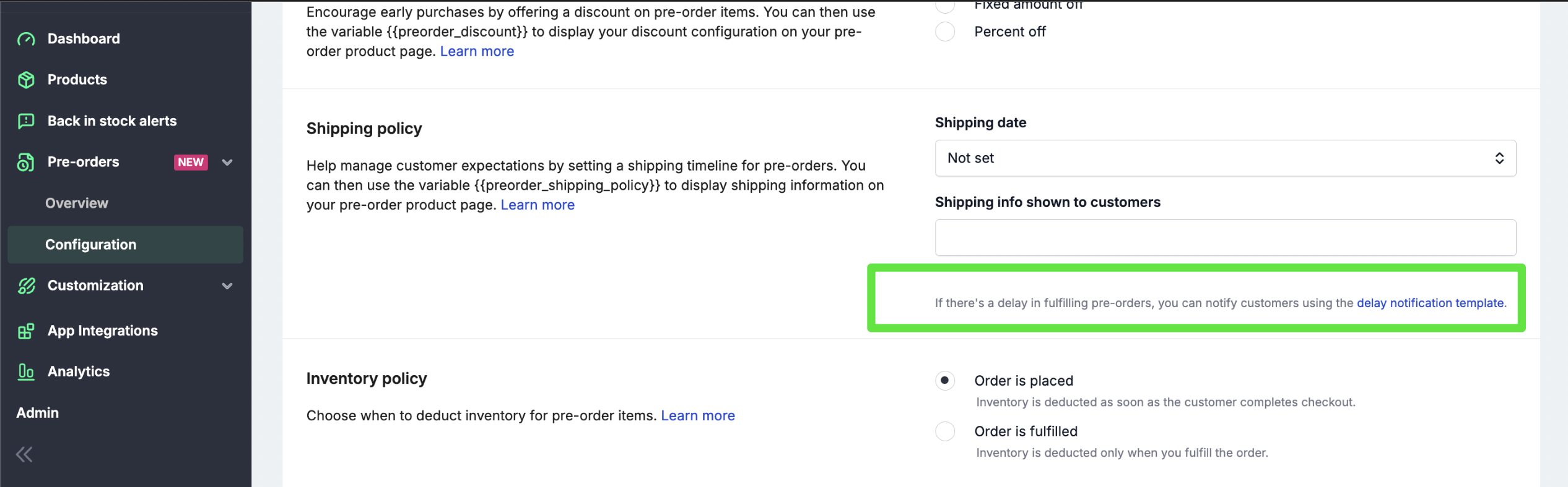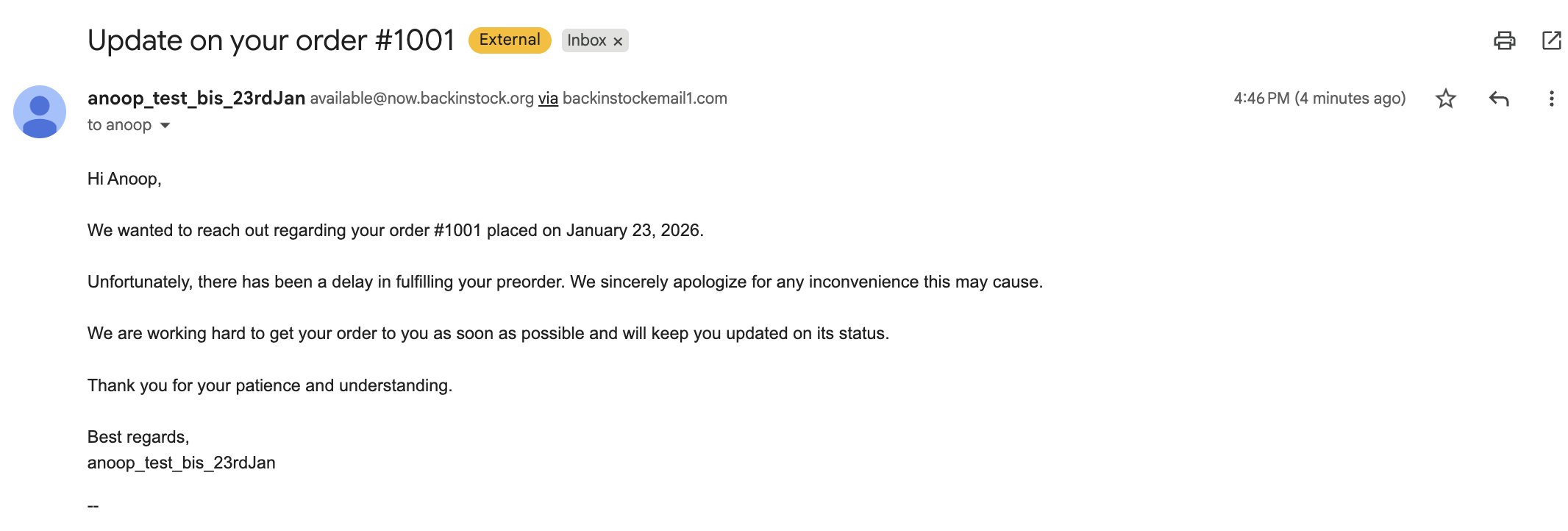 There may be times when unforeseen circumstances cause delays for pre-order shipments. To help you manage customer expectations proactively, you can now send delay notifications directly from the Back in Stock app.