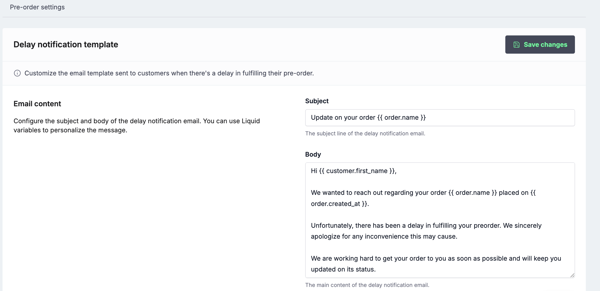 You can fully customize the subject line and body content of the delay email to match your brand's voice.