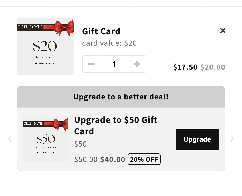 Congratulations you now know how an Upgrade and Save offer looks like on the cart. Next, comes the strategy and implementation element.