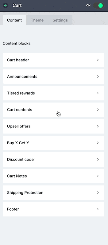 Your Cart Placement must also be LIVE + Shopify Theme must have our App Toggle ENABLED too for the whole setup to show on your store.