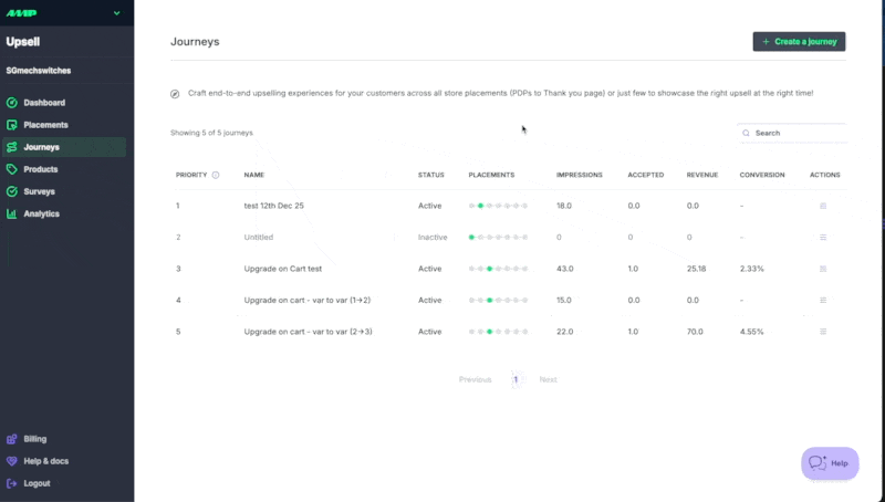 MOST IMPORTANTLY: Remember to Save and Enable the Journey for it to show on your store